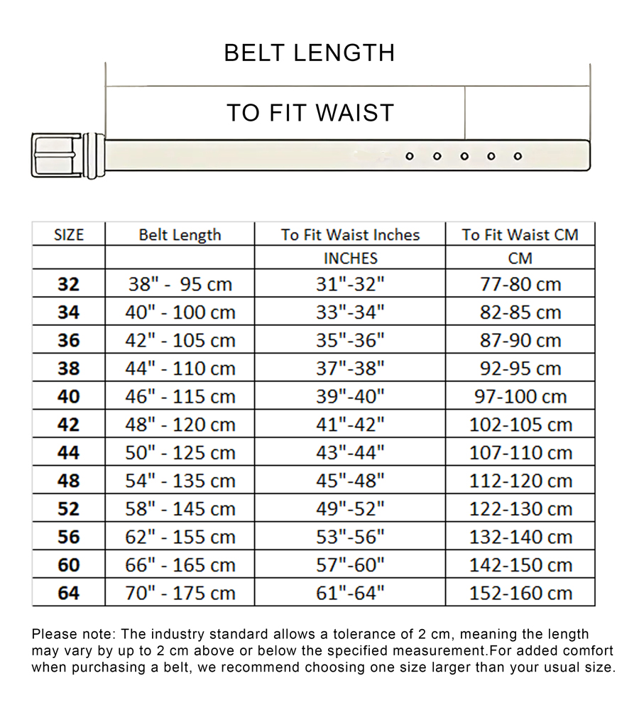 Guide des tailles - D555 Dylan Tan Bonded Leather Belt