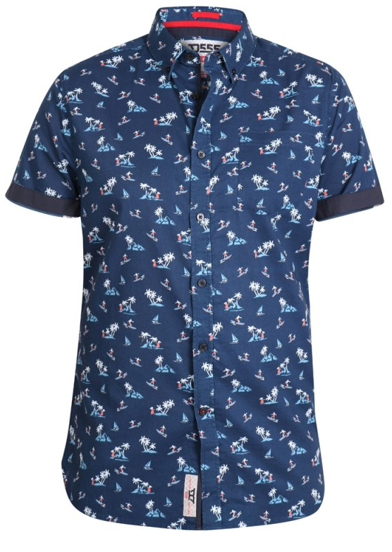 Chemise Hawaï grande tailleNous le vendons en tailles 2XL-5XLDe la marque britannique cool D555Fabriqué en 100% cotonCouleur marineLavage en machine à 30°.La chemise a une poche sur la poitrineProduit saisonnier - les tailles ne sont pas réapprovisionnées.Cliquez ici pour afficher le guide des tailles