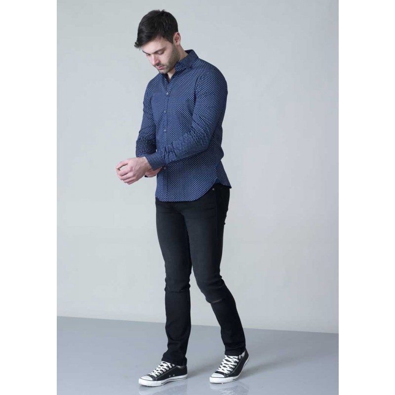D555 Lavar Long Sleeve Diamond Printed Shirt