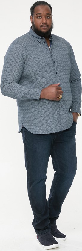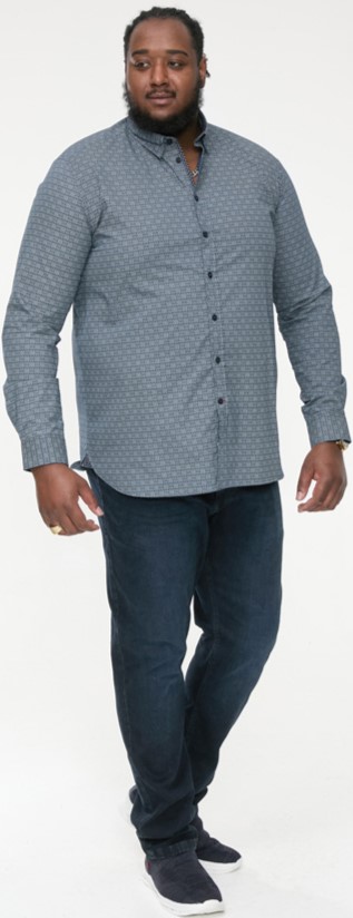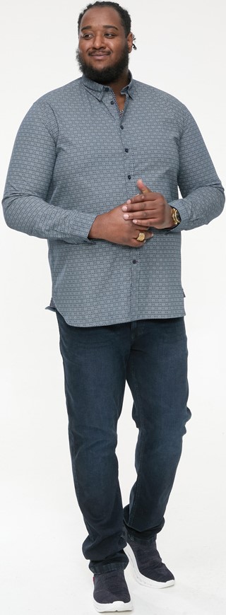 Guide des tailles - D555 MANGALA Geometric AOP Long Sleeve Shirt With Concealed Button Down Collar Navy