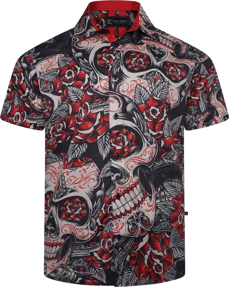 Guide des tailles - Kam Jeans 6062 Skull And Roses Print Short Sleeve Shirt Black