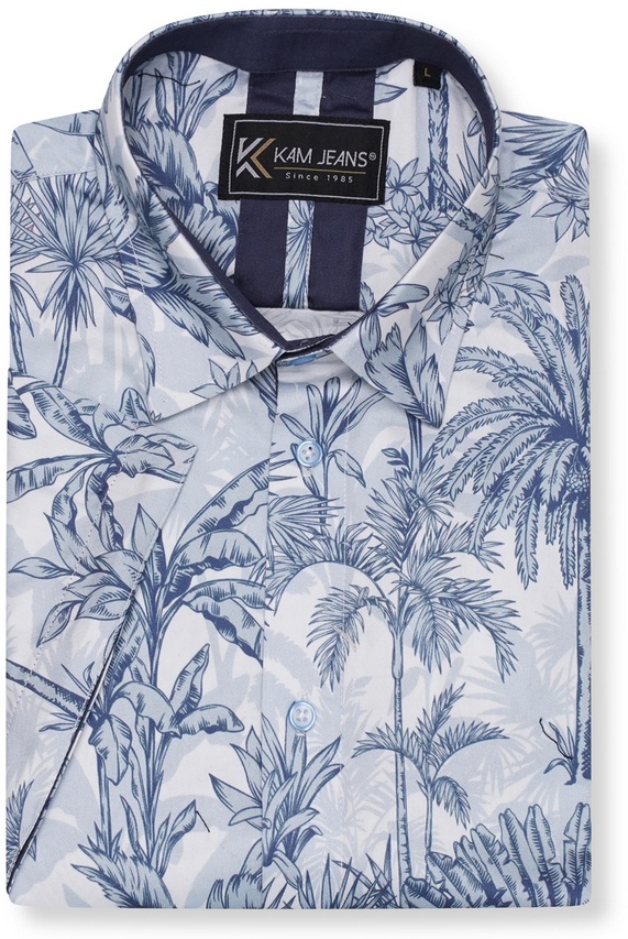 Guide des tailles - Kam Jeans 6063 Summer Print Short Sleeve Shirt Blue