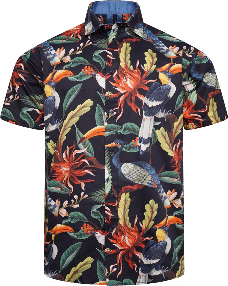 Guide des tailles - Kam Jeans 6066 Bird Print Short Sleeve Shirt Navy