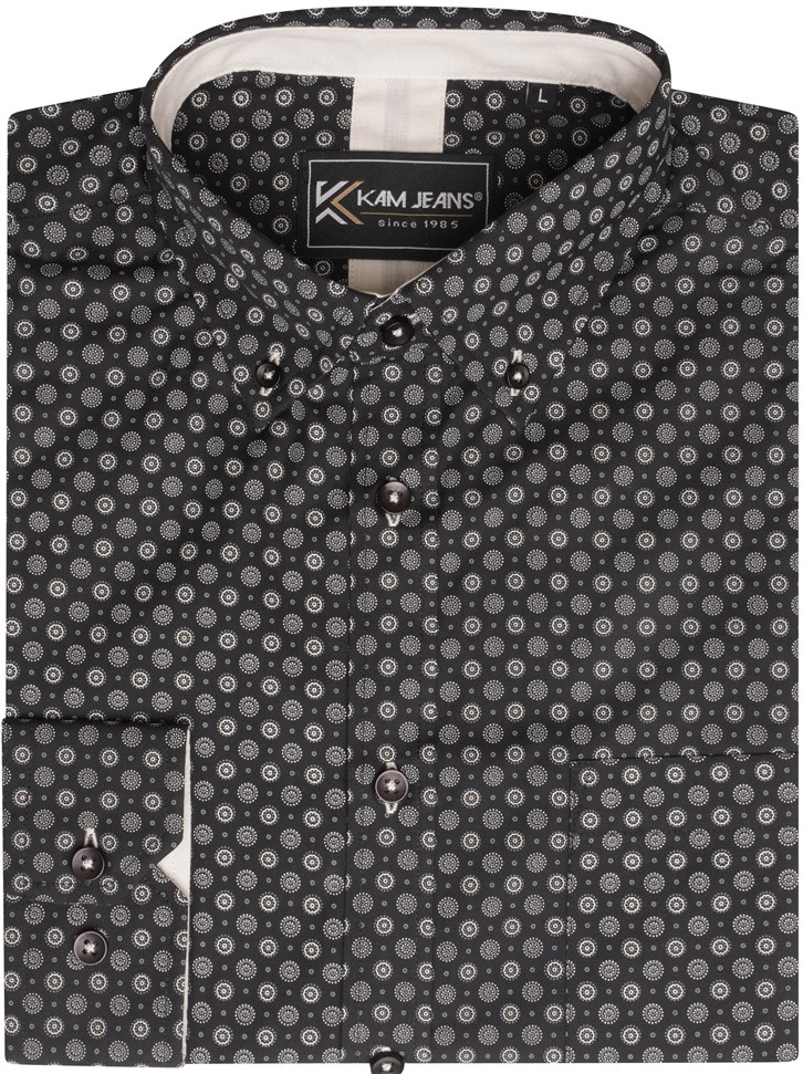 Guide des tailles - Kam Jeans 6296 Long Sleeve All Over Geo Print Shirt Black