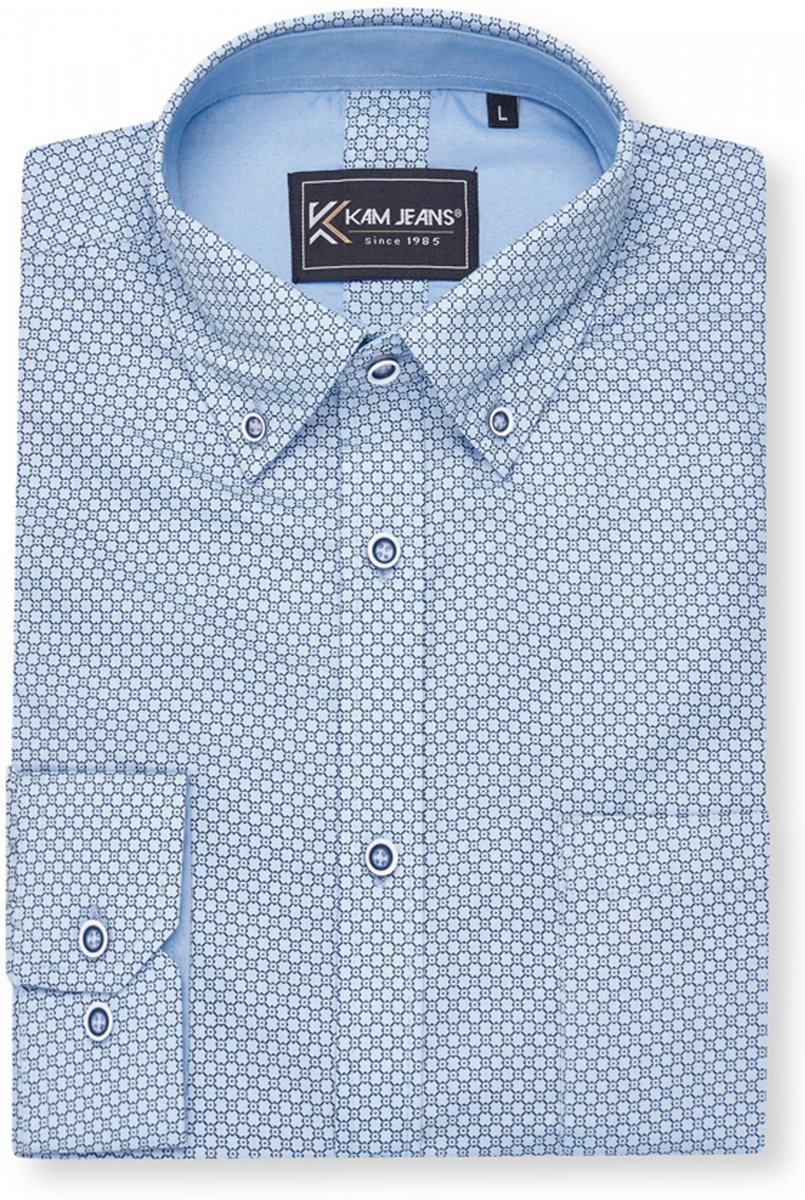 Guide des tailles - Kam Jeans 6361 All Over Geo Print Long Sleeve Shirt Sky Blue