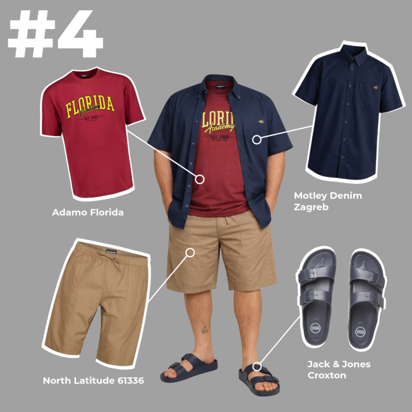 Une tenue simple pour les journées plus chaudes. La chemise ouverte donne un style soigné et aéré, le short garde un esprit décontracté, et les sandales sont parfaites pour les journées ensoleillées.