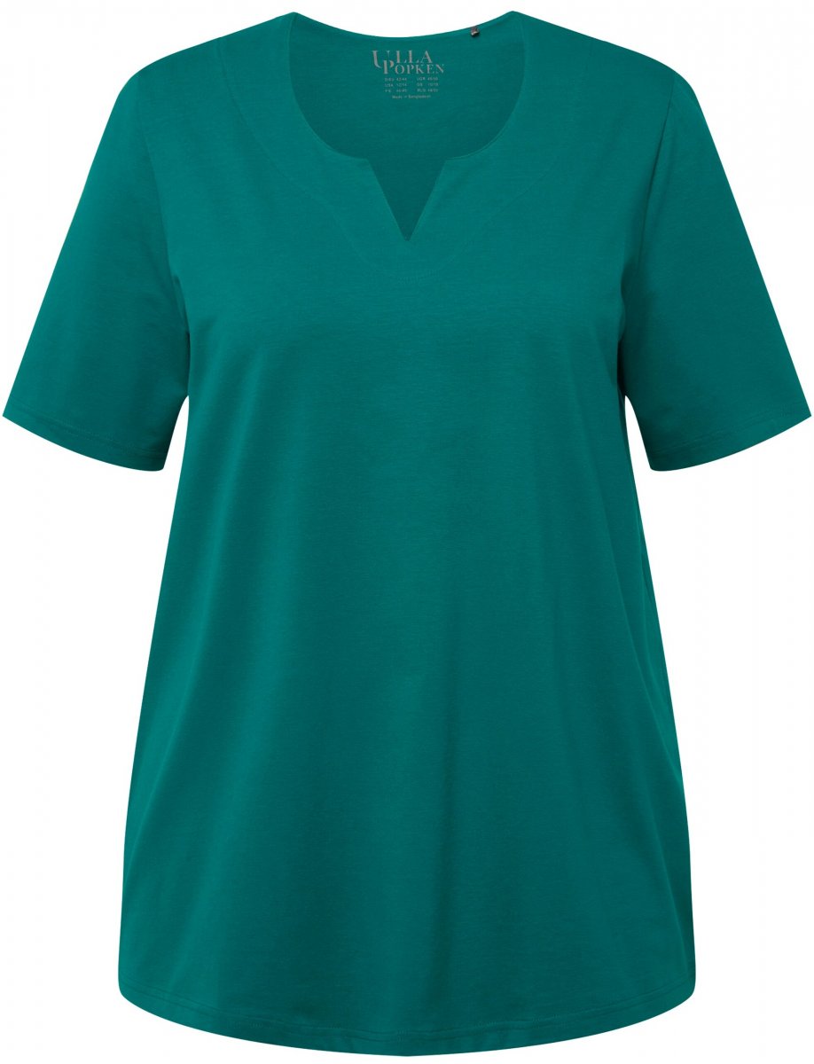 Ulla Popken Essential Notch Neck Stretch Tee Dark Emerald
