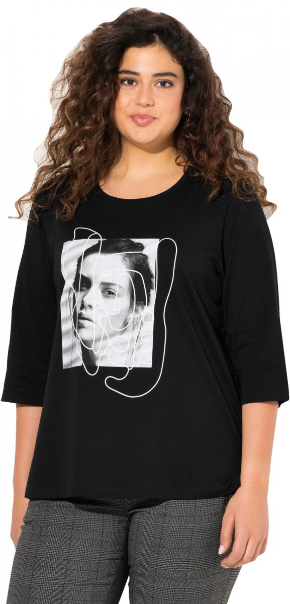Ulla Popken Face 3/4 Sleeve Graphic Tee Black