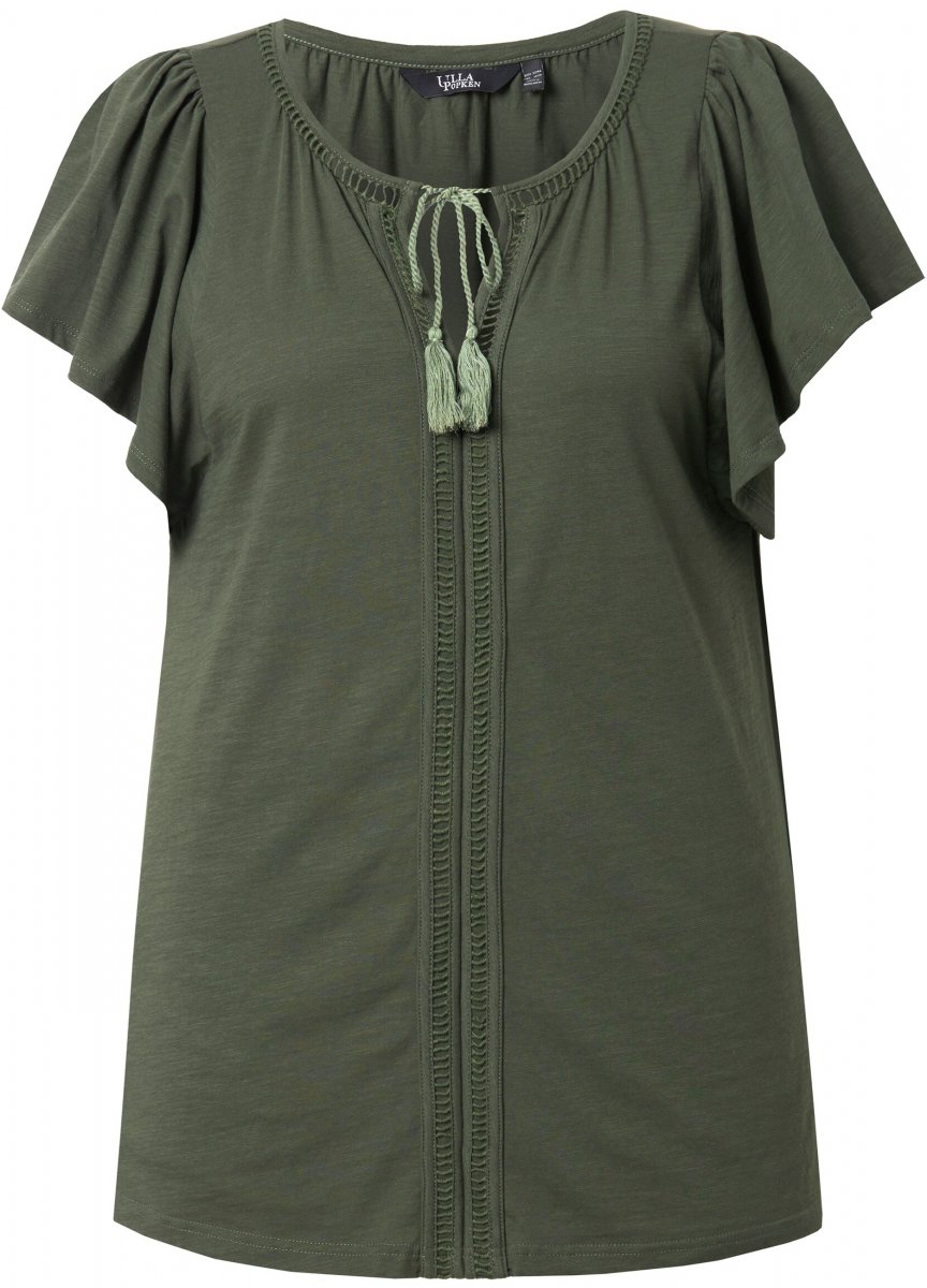 Ulla Popken Wing Sleeve V-Neck Tee Olive Grey