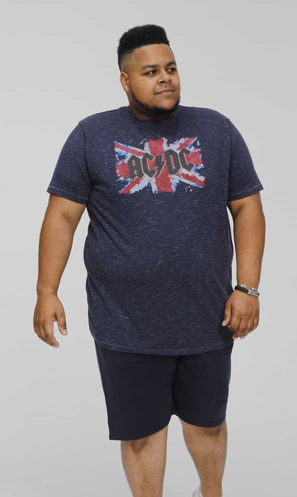 Guide des tailles - D555 DENNIS Official AC/DC Printed Crew Neck T-Shirt Navy Reno