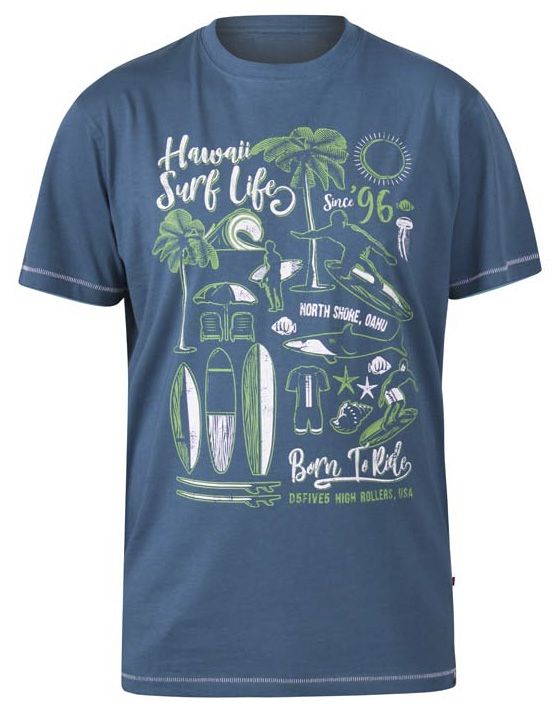 T-shirt grande tailleAchetez-le chez nous en tailles 2XL-6XLDe la marque britannique cool D555Fabriqué en 100% cotonLa couleur est bleueLavage en machine à 30°.Produit saisonnier - les tailles ne sont pas réapprovisionnées.Cliquez ici pour afficher le guide des tailles