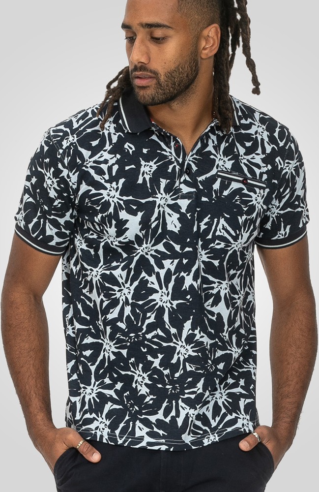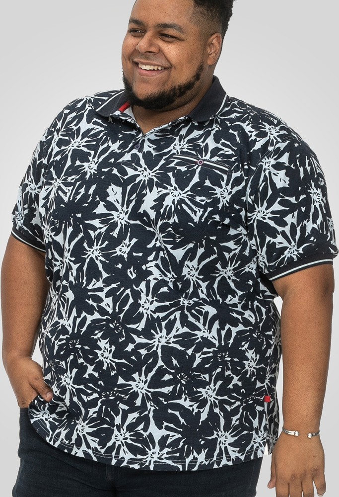D555 Halifax AOP Hawaiian Print Short Sleeve Polo Blue