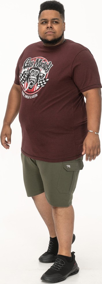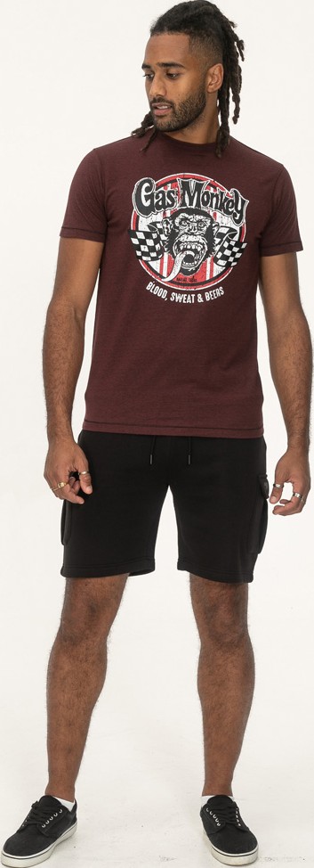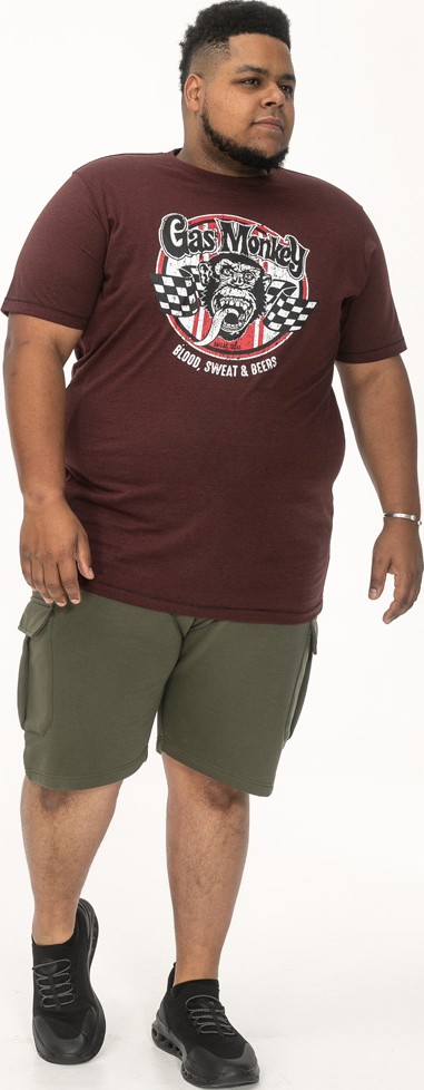 Guide des tailles - D555 Loughborough Official Gas Monkey Crew Neck T-Shirt Burgundy Black Twist