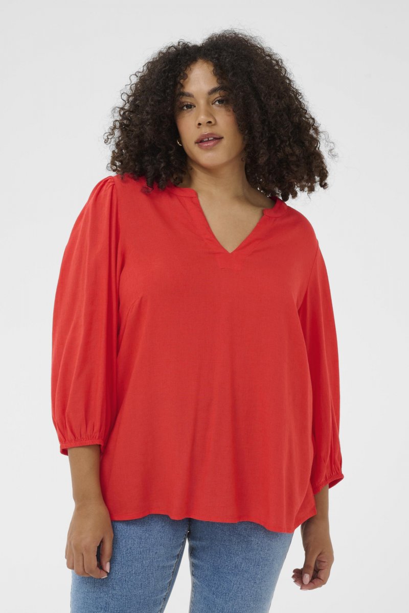 BlouseDisponible dans les tailles 42–54De la marque Kaffe CurveMatière : 70 % viscose (LivaEco™), 30 % linCoupe classiqueCouleur rougeCliquez ici pour afficher le guide des tailles