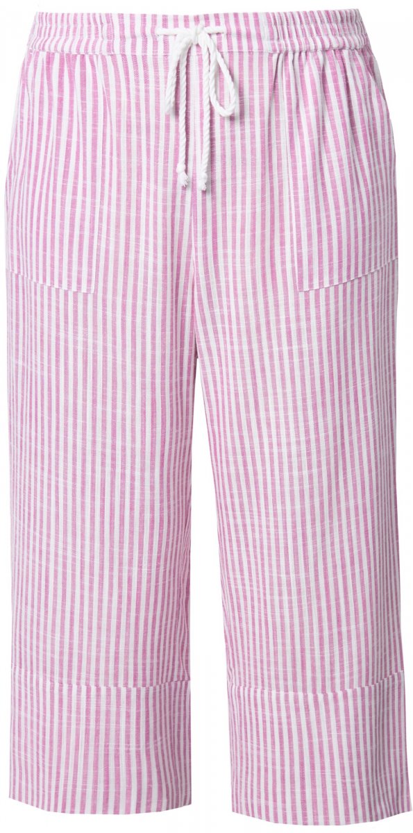 Ulla Popken Coastal Stripe Linen Blend Elastic Waist Culottes Purple