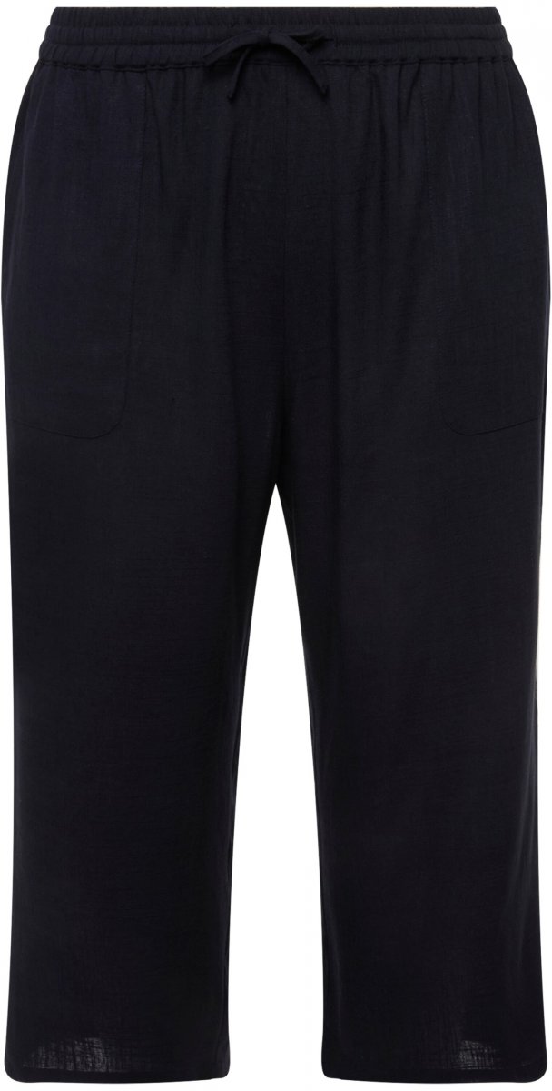 Ulla Popken Cropped Linen Blend Elastic Waist Pants Navy