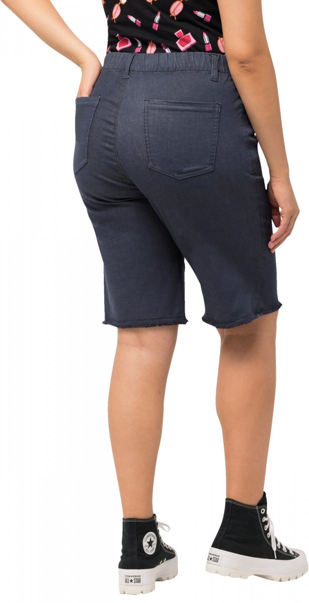 Ulla Popken Frayed Hemline Elastic Waistband Bermuda Shorts Navy