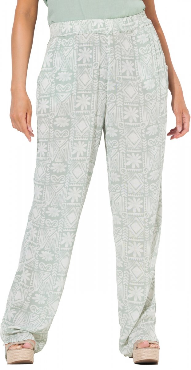 Ulla Popken Mosaic Print Elastic Waist Pants White