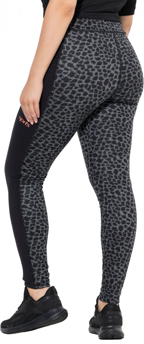 Ulla Popken Quick Drying Leopard Print Sport Leggings Black