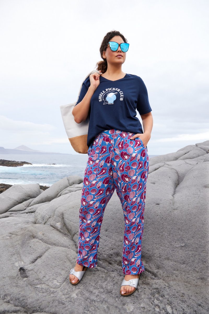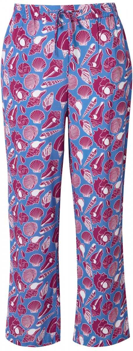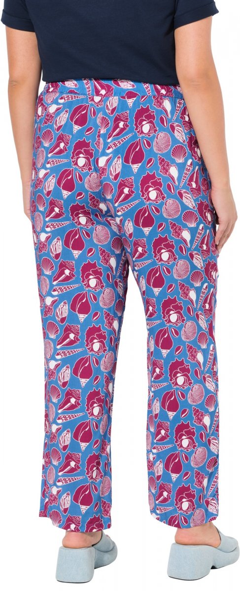 Ulla Popken Seashell Print Elastic Waist Pants Blue