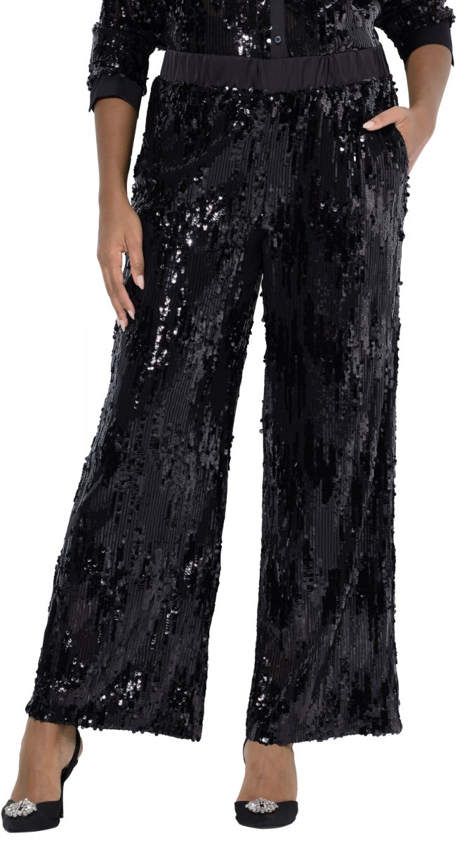 Ulla Popken Sequined Elastic Waist Pants Black
