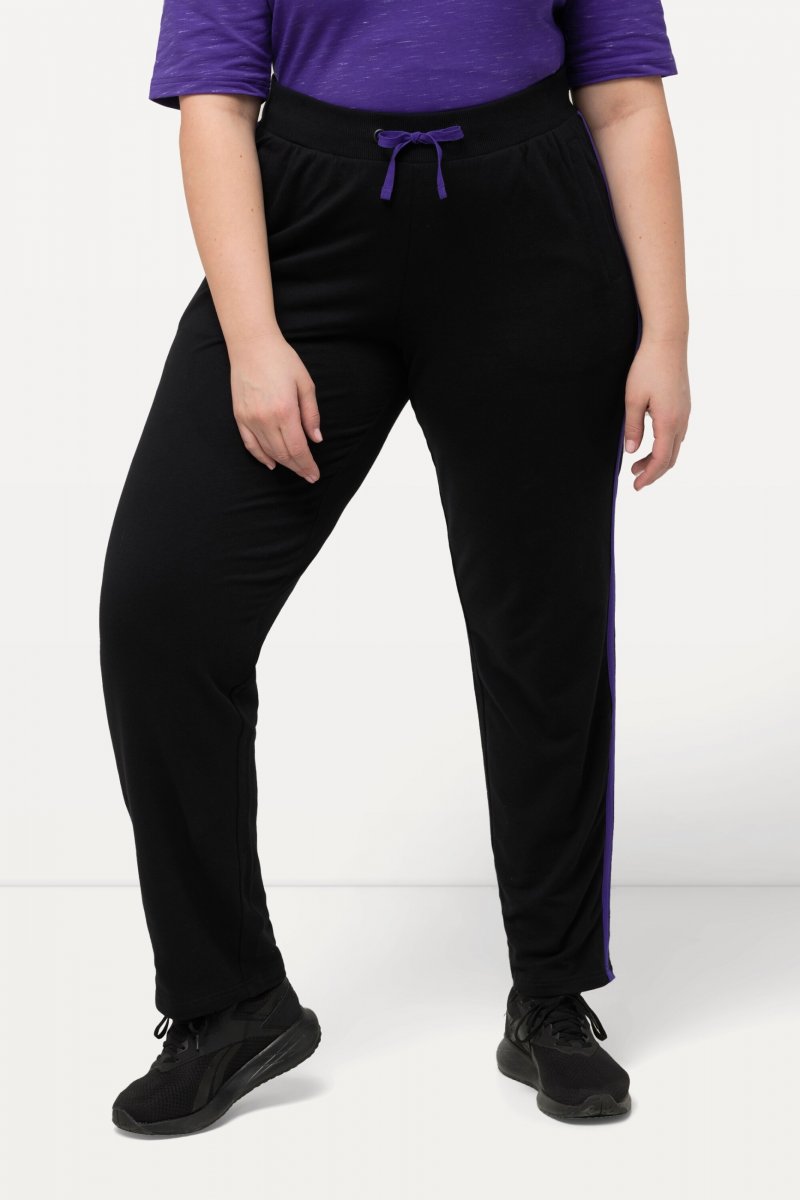 Ulla Popken Striped Elastic Waist Sweatpants Black