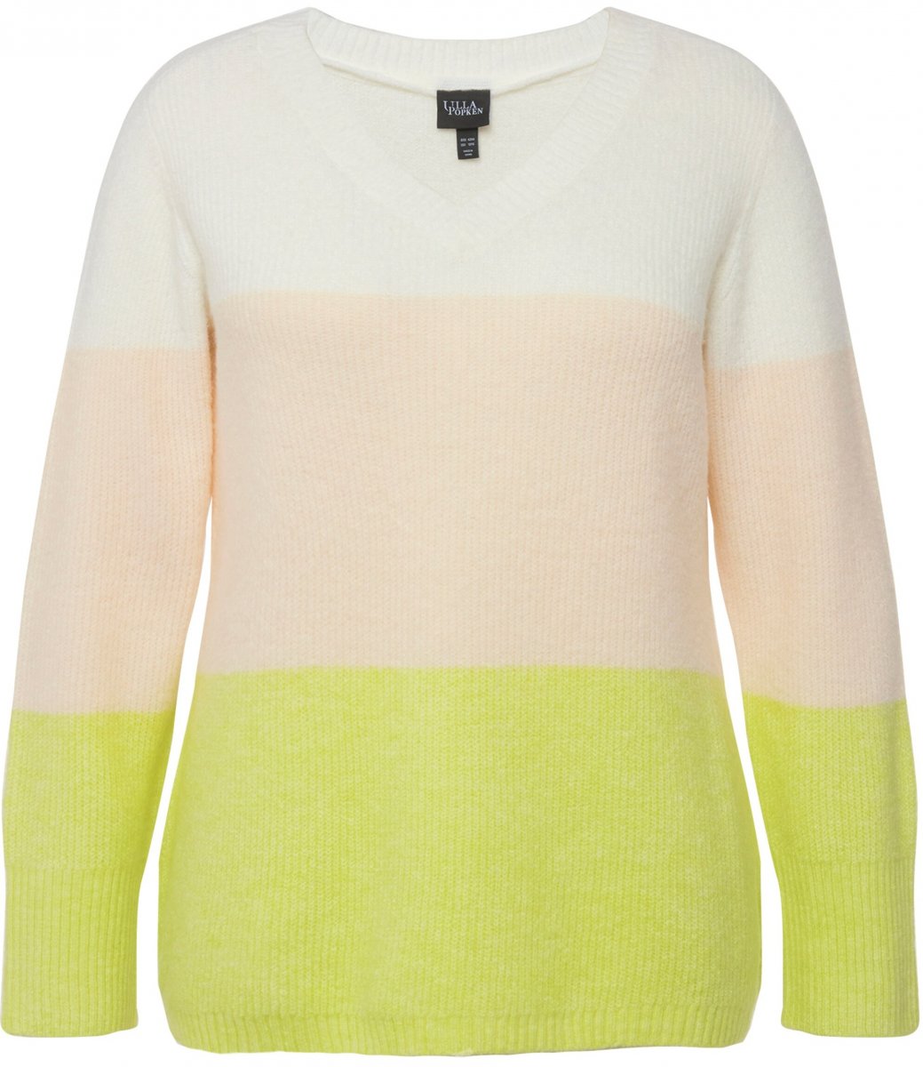 Guide des tailles - Ulla Popken Block Stripe Long Sleeve V-Neck Sweater Lime Green