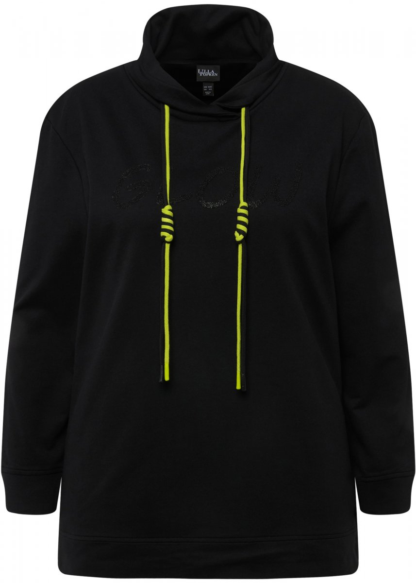 Ulla Popken GLOW Lettered Collared Sweatshirt Black