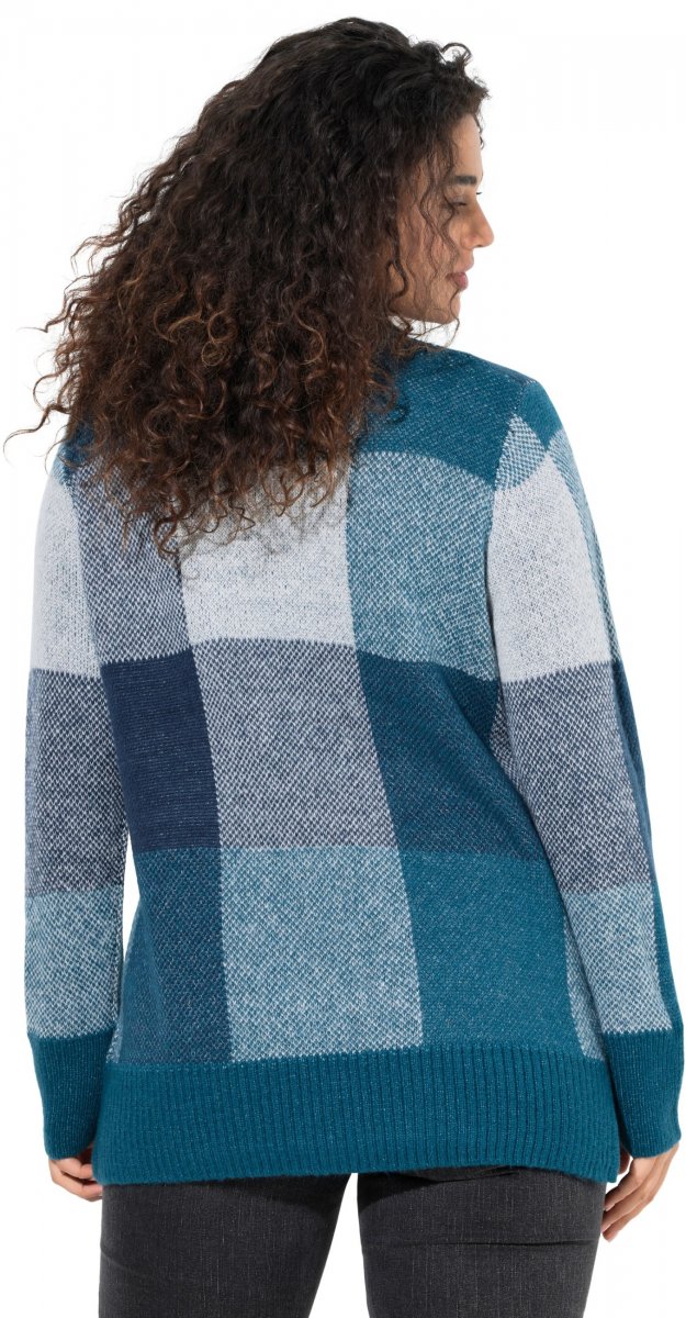 Ulla Popken Grand Check Long Sleeve Sweater Teal