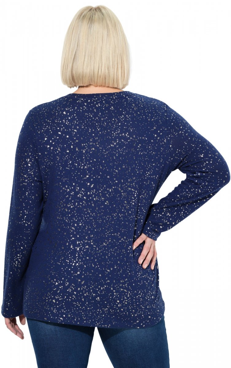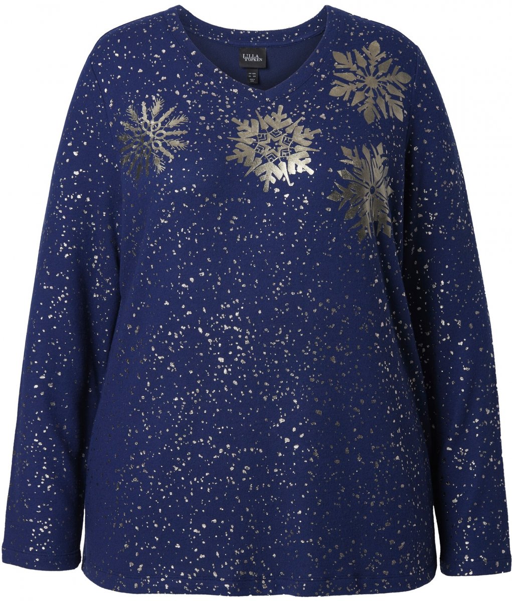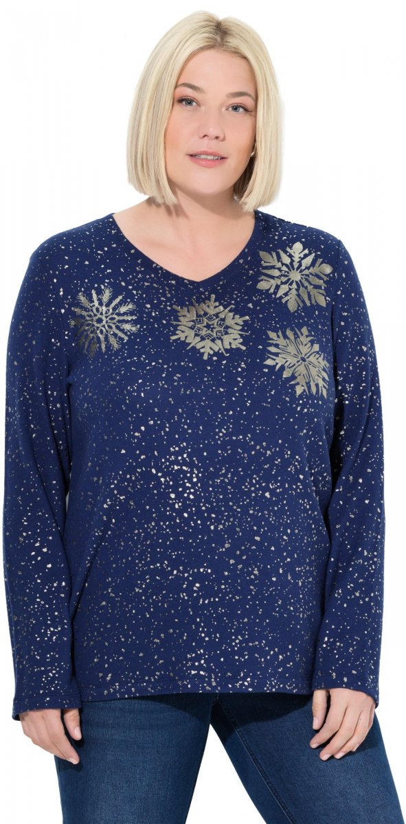 Guide des tailles - Ulla Popken Metallic Print Extra Soft Christmas Sweatshirt Ink Blue