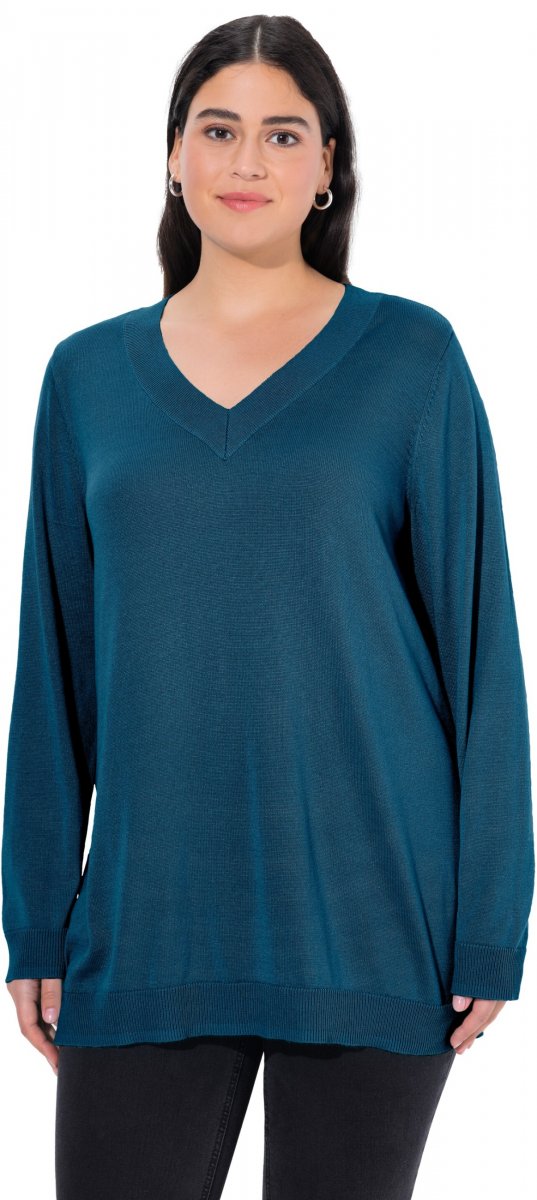 Guide des tailles - Ulla Popken Soft Fine Knit Pullover V-Neck Sweatshirt Teal