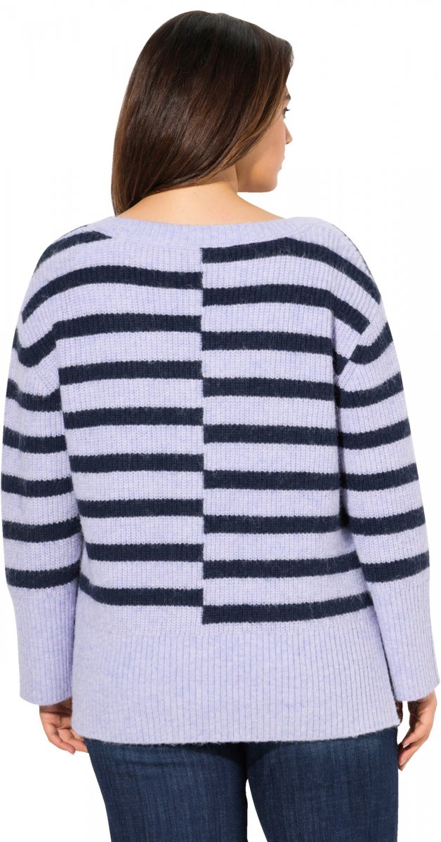 Guide des tailles - Ulla Popken Split Stripe Long Sleeve V-Neck Sweater Blue Grey