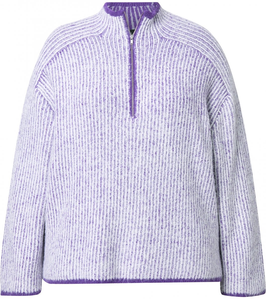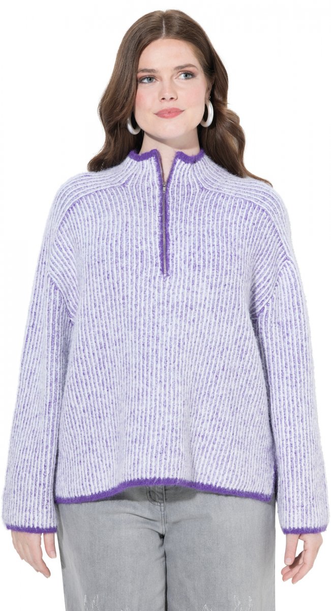 Guide des tailles - Ulla Popken Striped Knit Long Sleeve Troyer Collar Sweater Purple