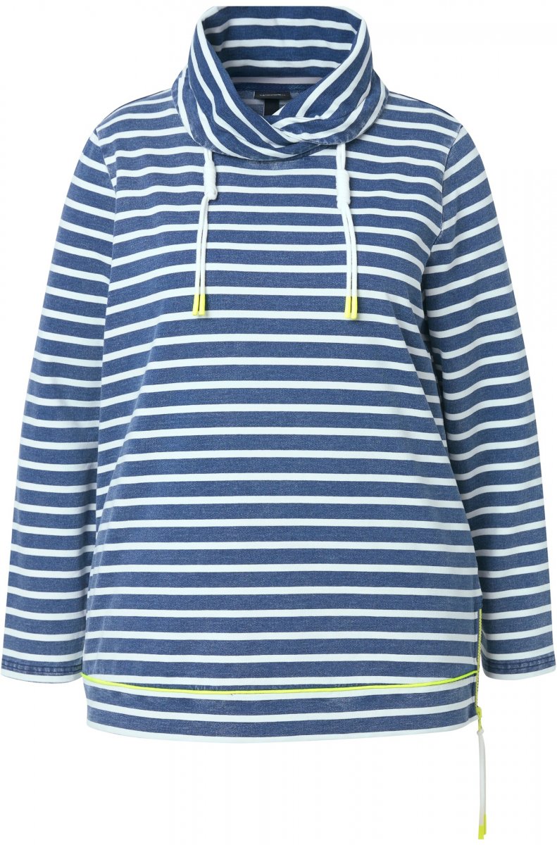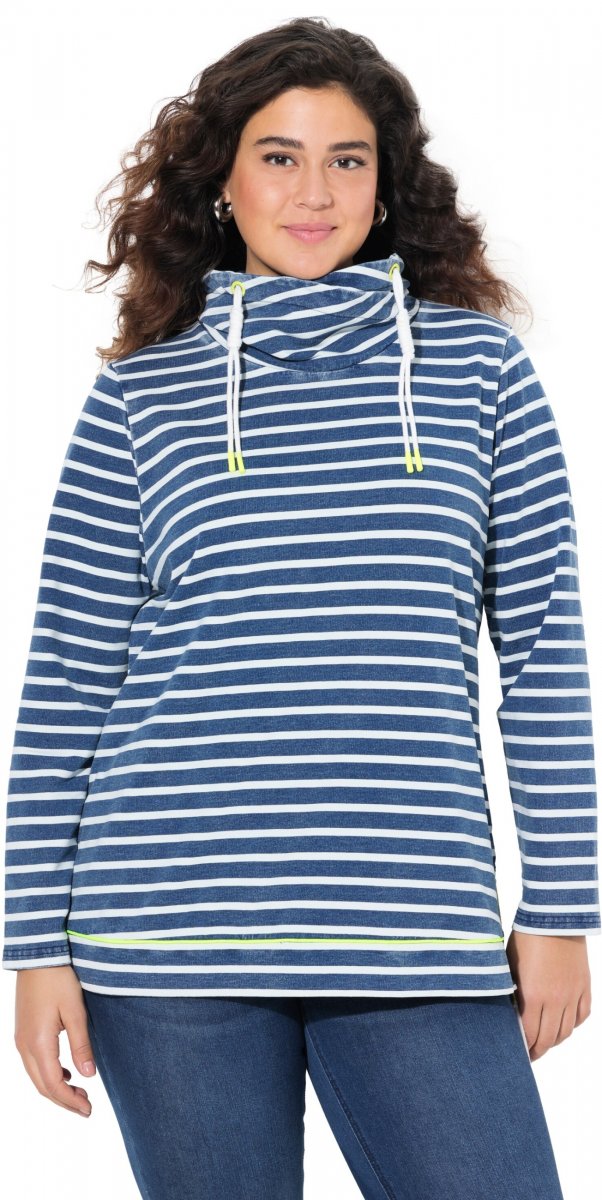 Ulla Popken Striped Turtleneck Neon Detail Sweatshirt Indigo Denim