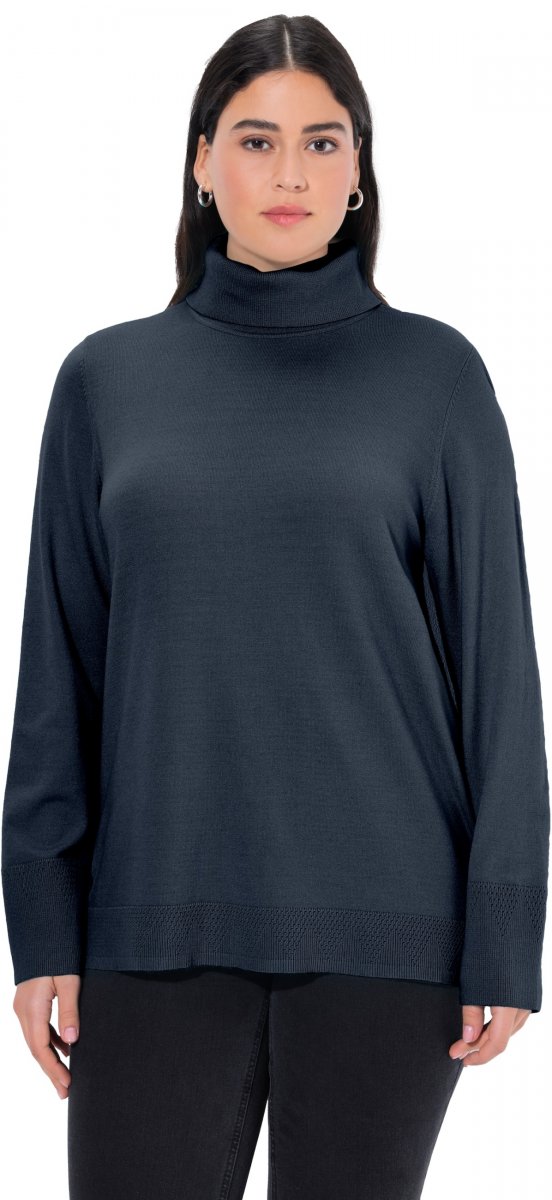 Guide des tailles - Ulla Popken Turtleneck Ribbed Trim Long Sleeve Sweater Navy