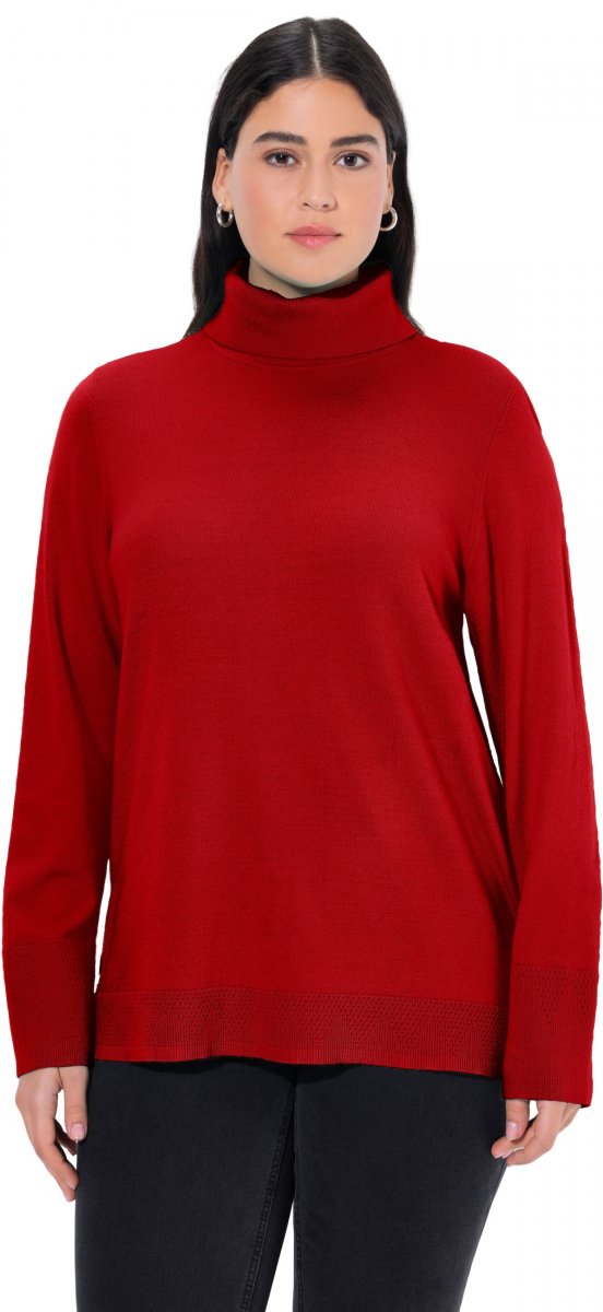 Guide des tailles - Ulla Popken Turtleneck Ribbed Trim Long Sleeve Sweater Salsa Red