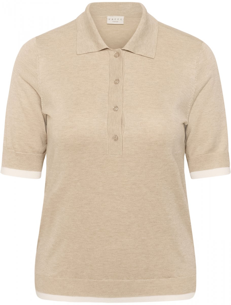 PoloDisponible du S au XLDe la marque Kaffe CurveFabriqué en 80% viscose et 20% nylonCoupe classiqueCouleur beigeCliquez ici pour afficher le guide des tailles