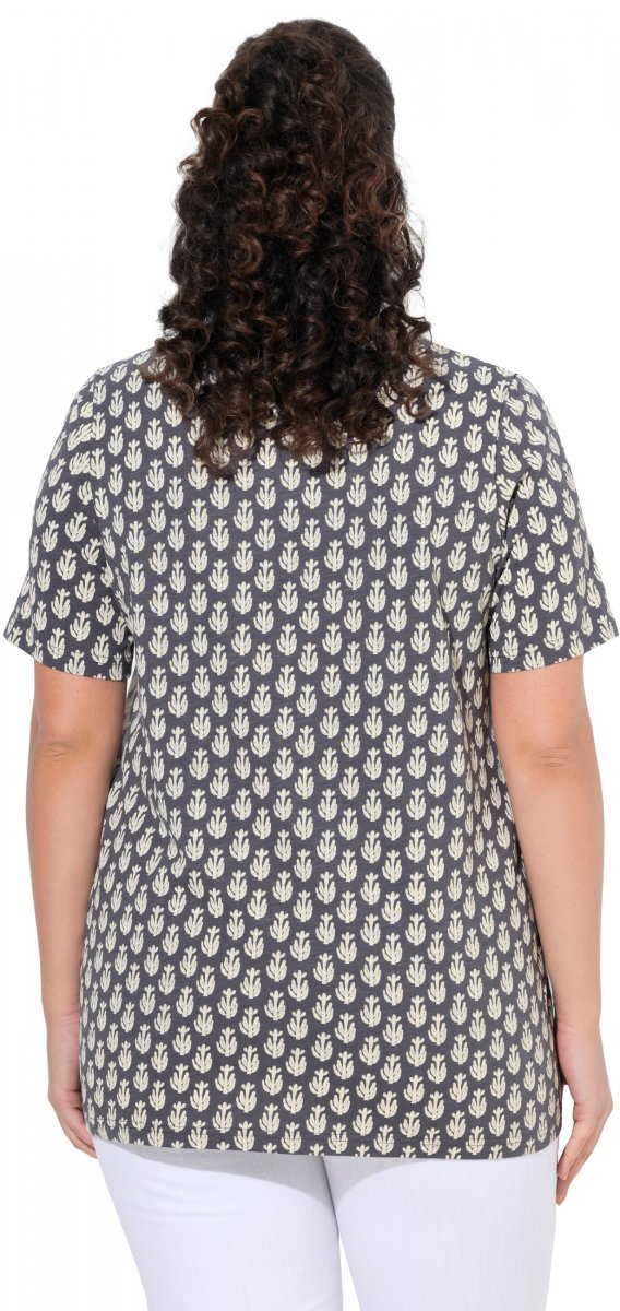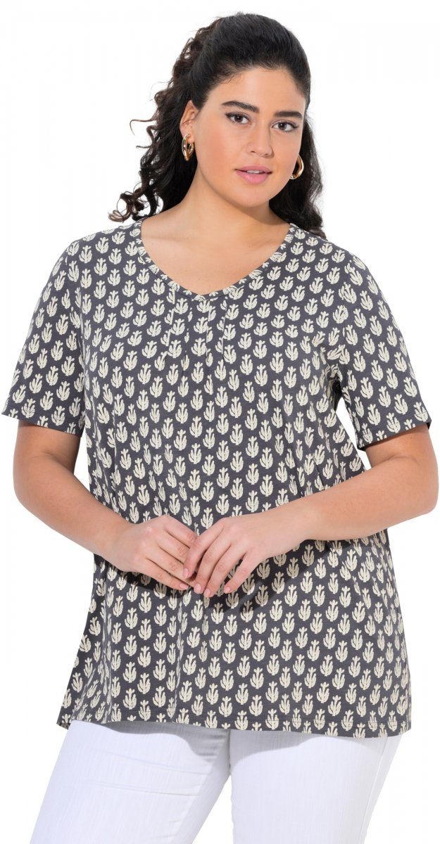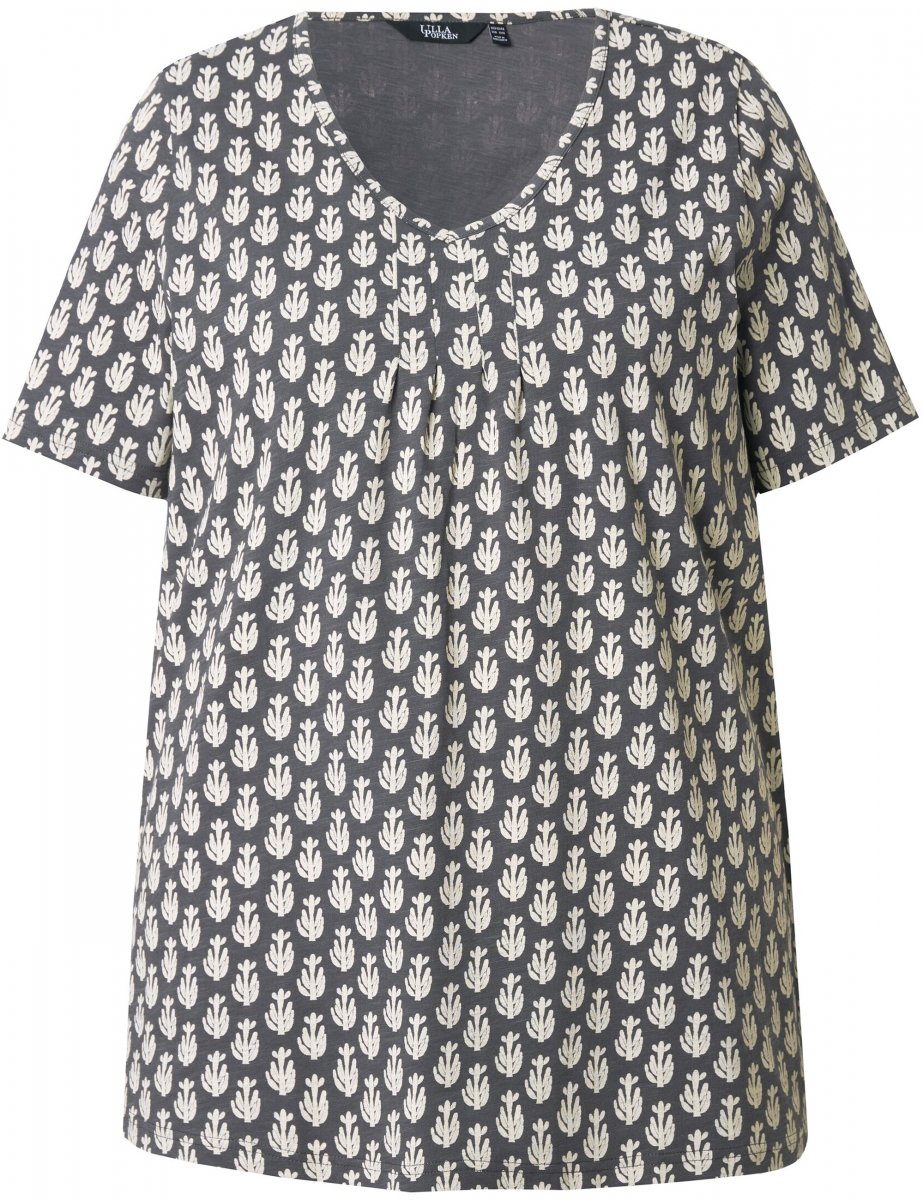 Ulla Popken Cactus Print Short Sleeve V-Neck Tee Graphite Grey