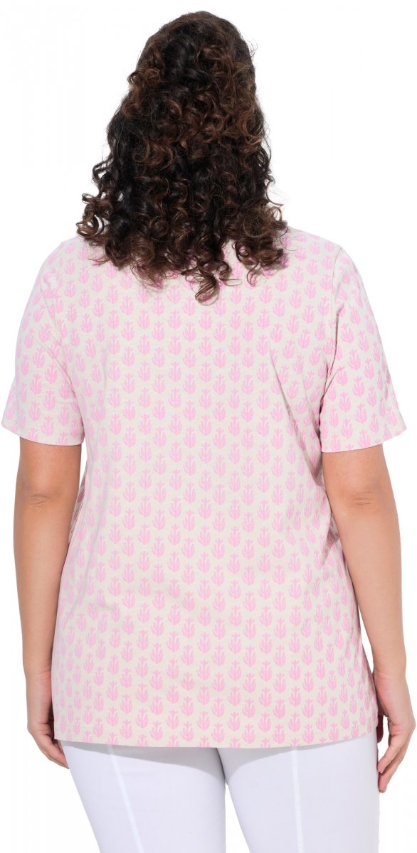 Guide des tailles - Ulla Popken Cactus Print Short Sleeve V-Neck Tee Pink