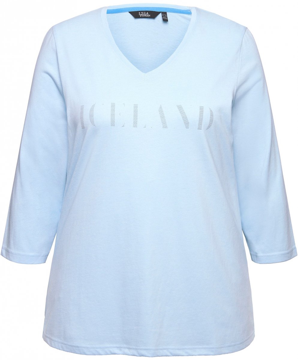 Ulla Popken Country Lettered 3/4 Sleeve Tee Soft Light Blue