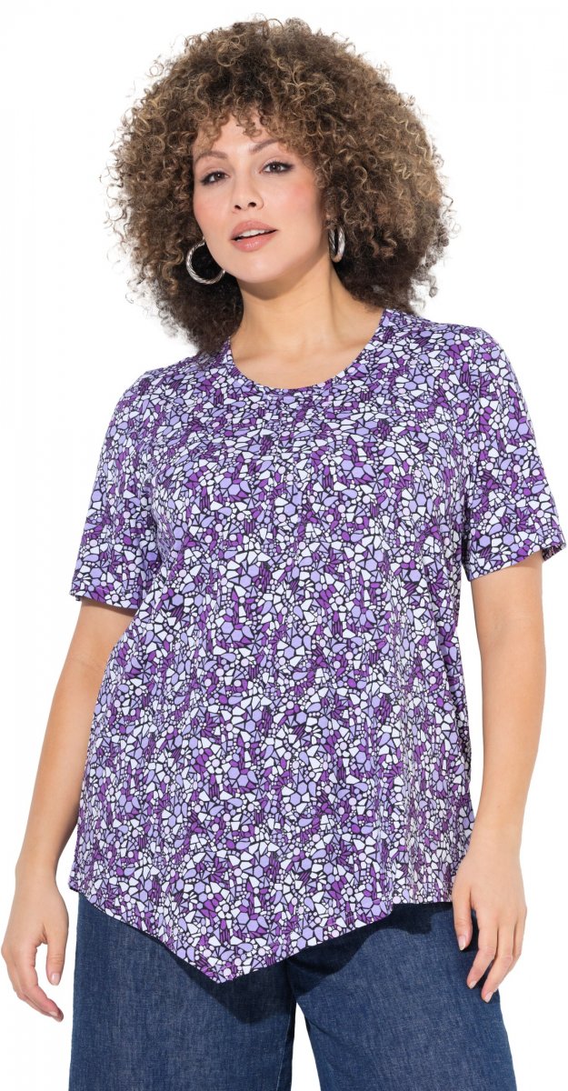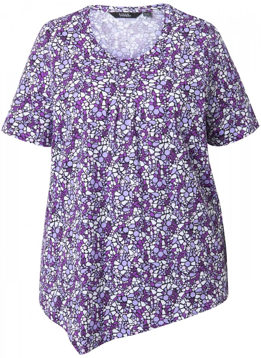 Guide des tailles - Ulla Popken Floral Pointed Hem Short Sleeve Tee Purple