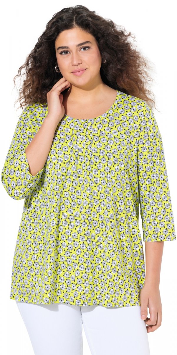 Guide des tailles - Ulla Popken Flower Print 3/4 Sleeve A-Line Tee Lime