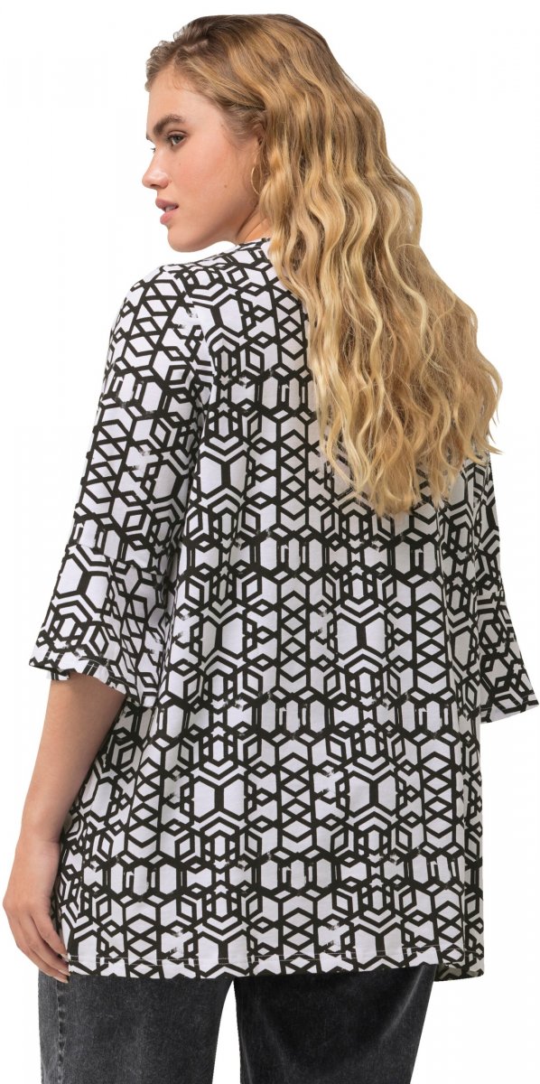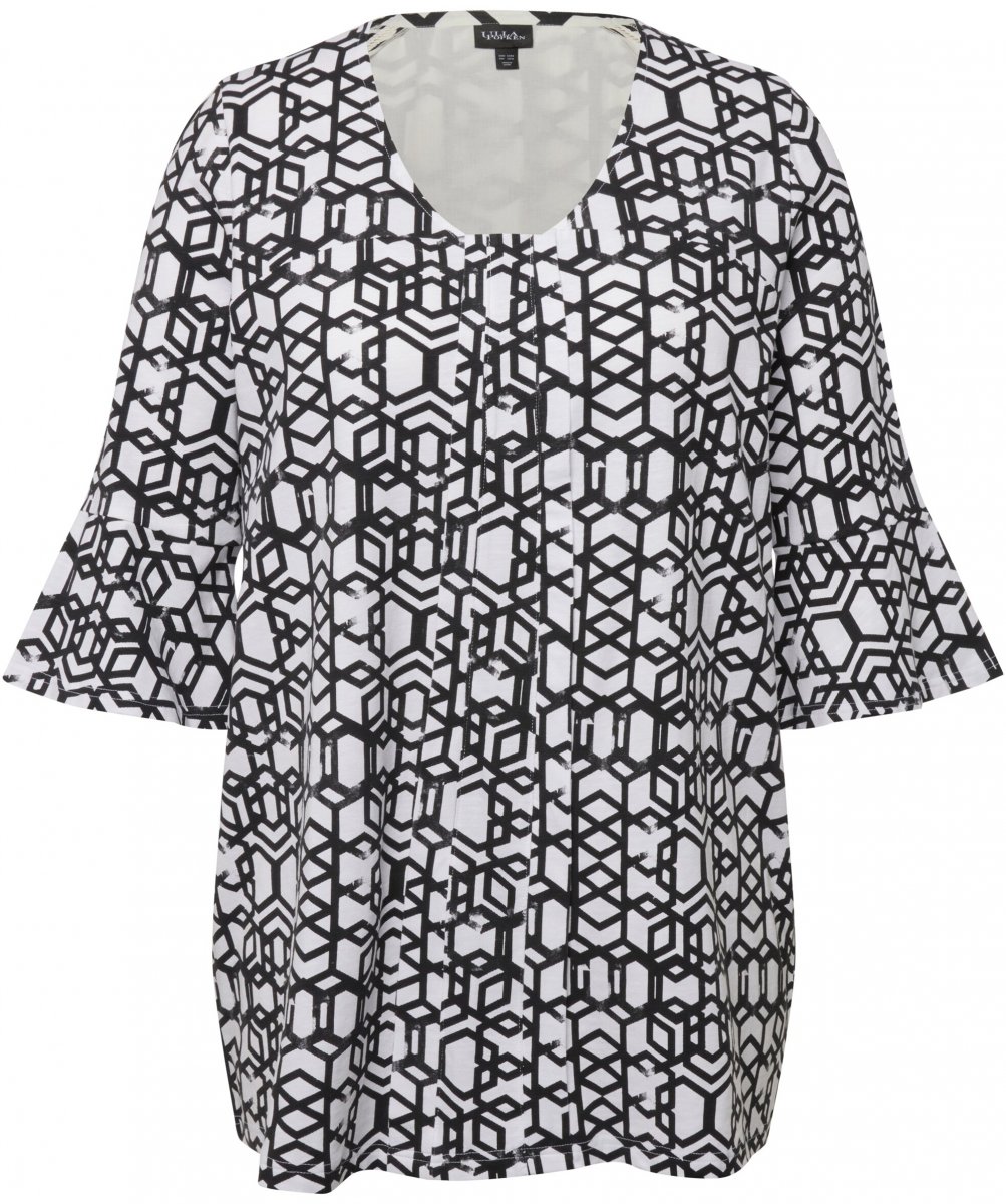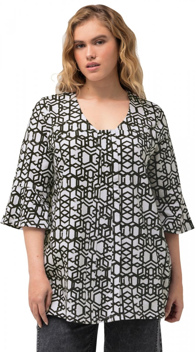 Ulla Popken Geometric Print Trumpet Sleeve Tee Black