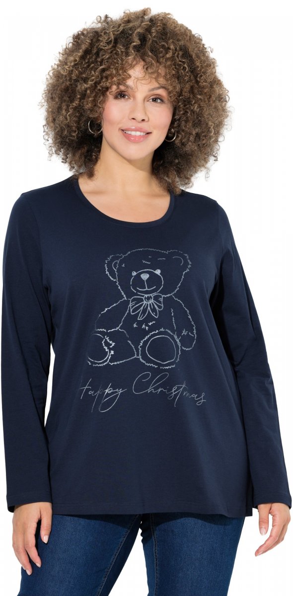 Ulla Popken Holiday Long Sleeve Graphic Tee Navy Blue