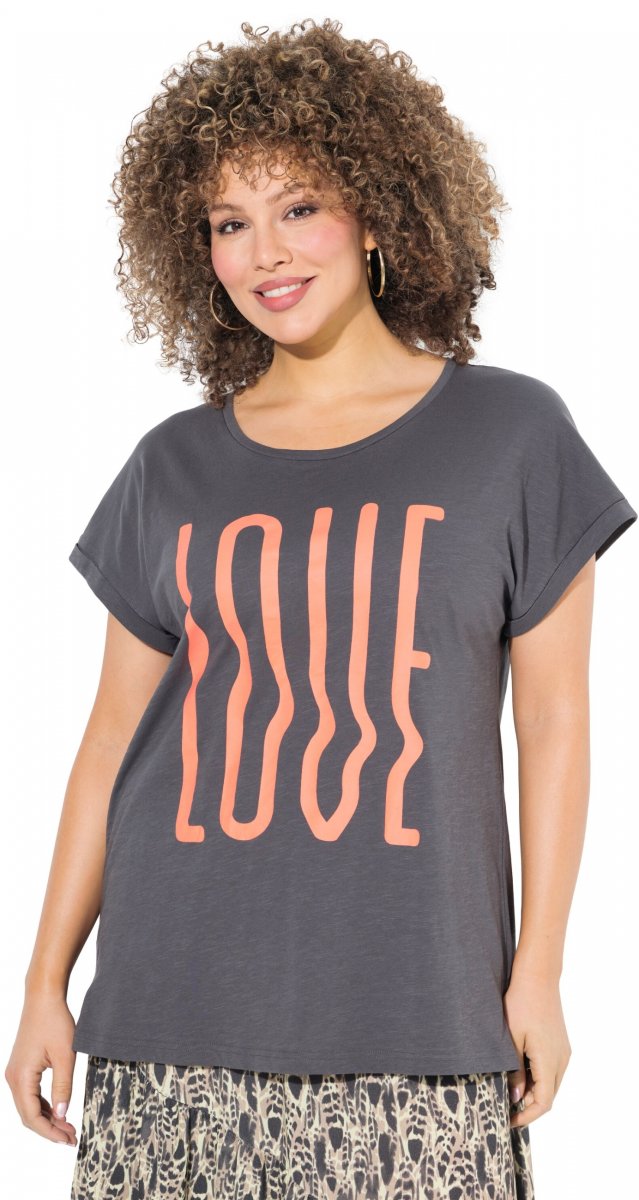 Ulla Popken LOVE Short Sleeve Graphic Tee Graphite Grey