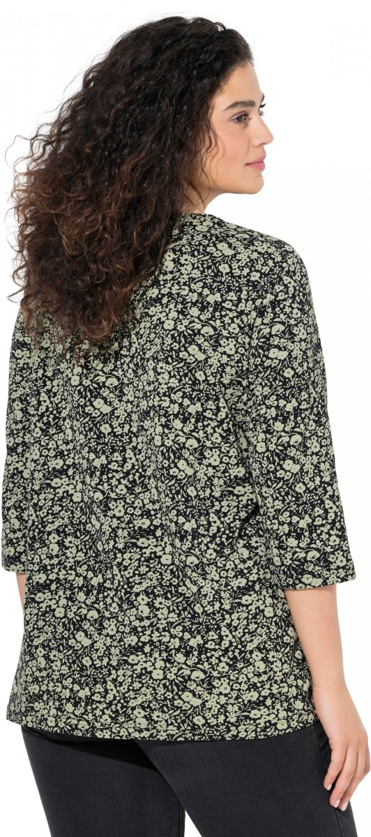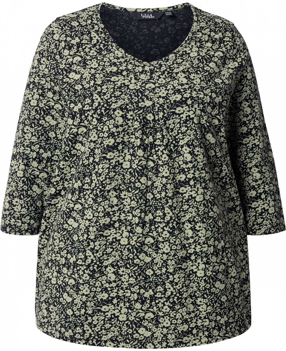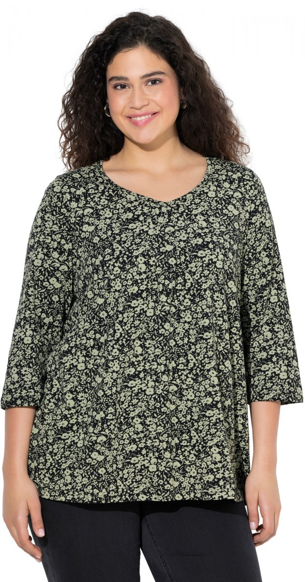 Guide des tailles - Ulla Popken Pleated Floral Print 3/4 Sleeve Tee Pond Green