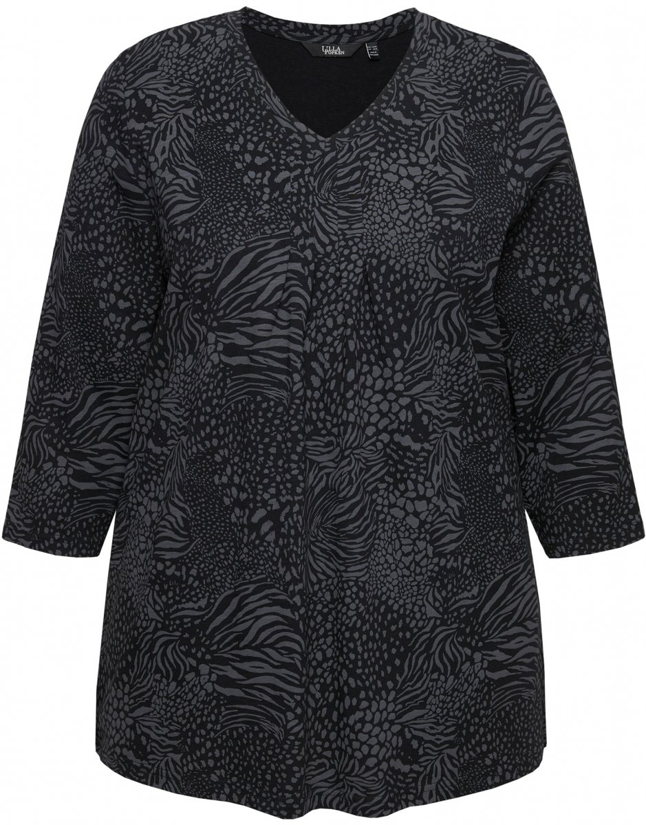 Ulla Popken Animal Print 3/4 Sleeve V-Neck Tee Black