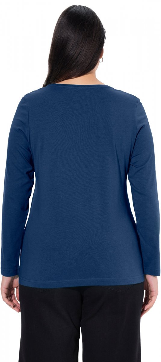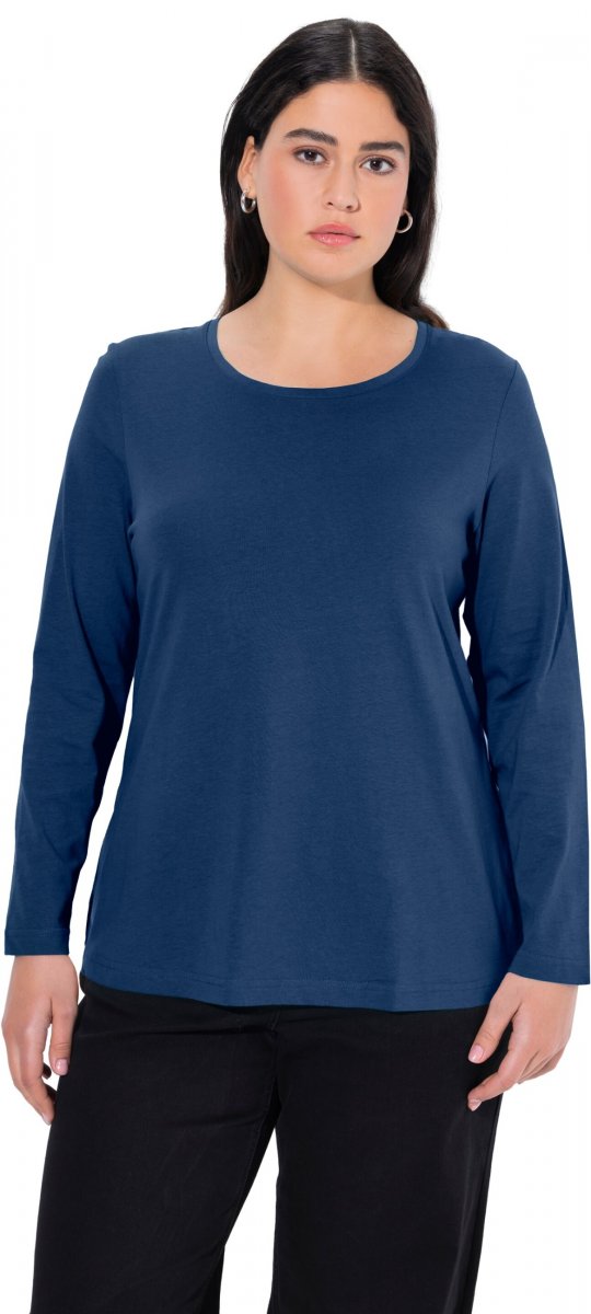 Ulla Popken Basic Round Neck Long Sleeve Slim Fit Cotton Tee Dark Blue
