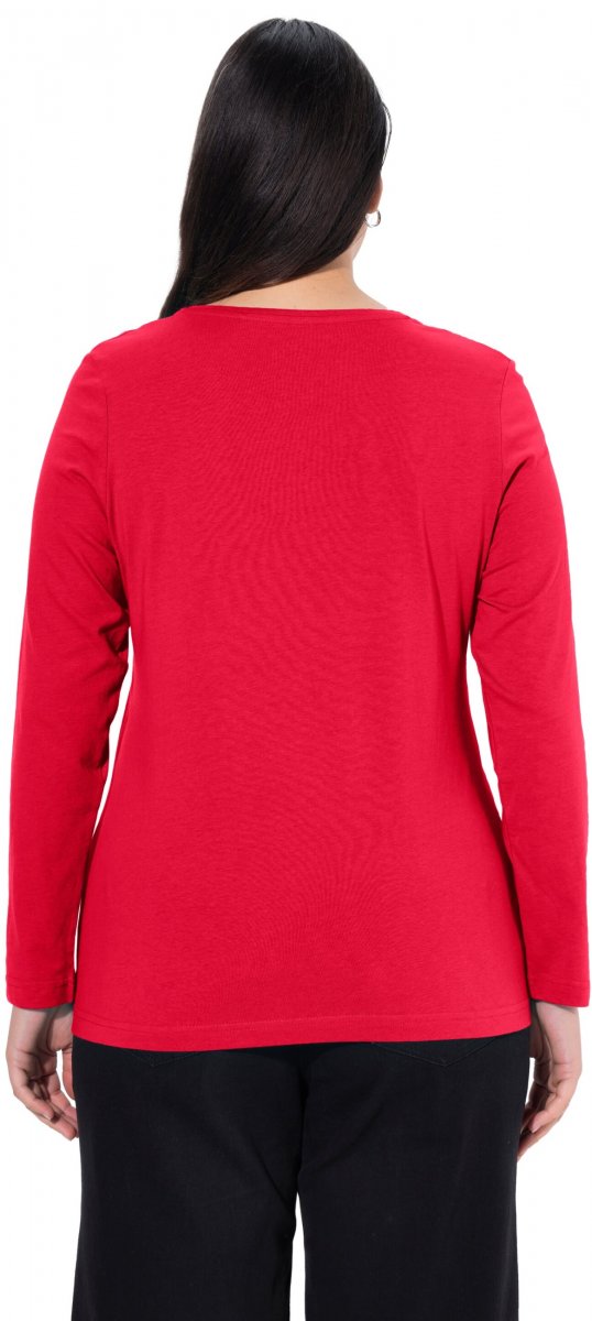 Ulla Popken Basic Round Neck Long Sleeve Slim Fit Cotton Tee Red