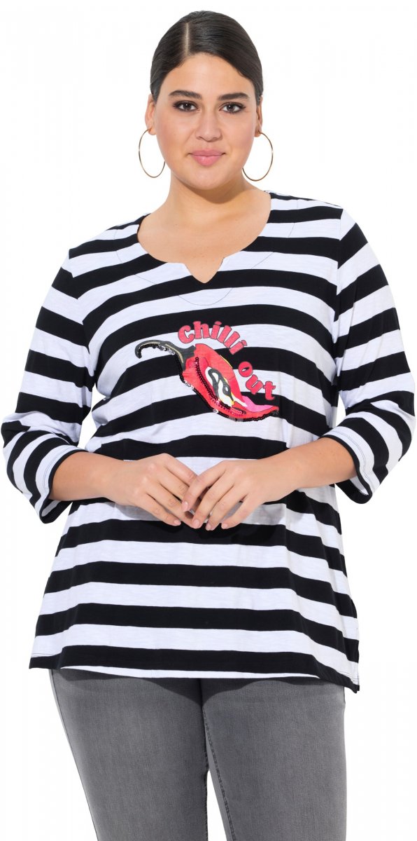 Guide des tailles - Ulla Popken Chilli Pepper Sequined 3/4 Sleeve Graphic Tee Black